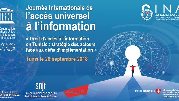 الحق في النفاذ إلى المعلومة في تونس: “استراتيجية الجهات الفاعلة في مواجهة تحديات التنفيذ” وذلك يوم الاربعاء 26 سبتمبر 2018 بداية من الساعة الثامنة والنصف صباحا بنزل لايكو تونس – شارع محمد الخامس.